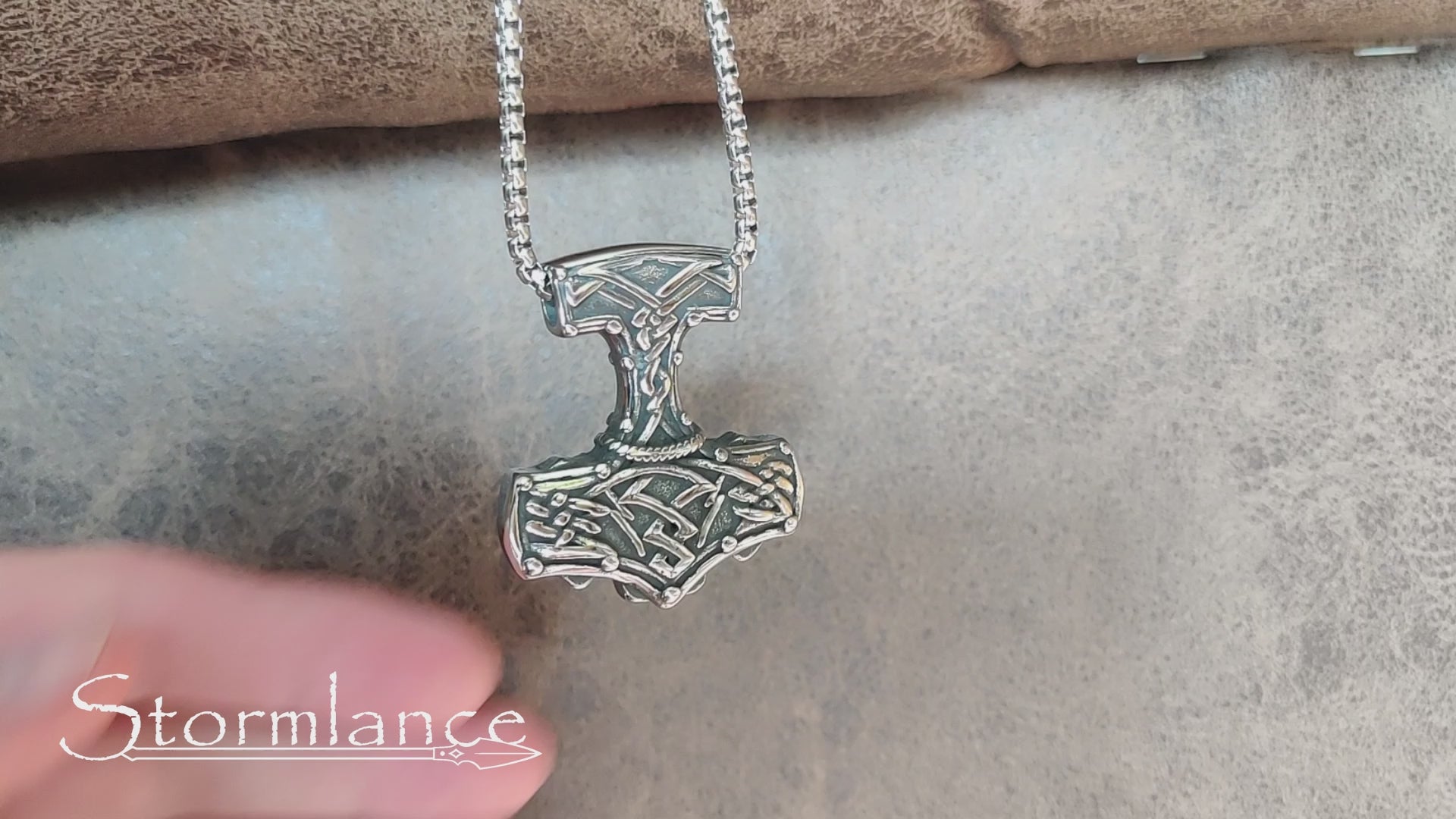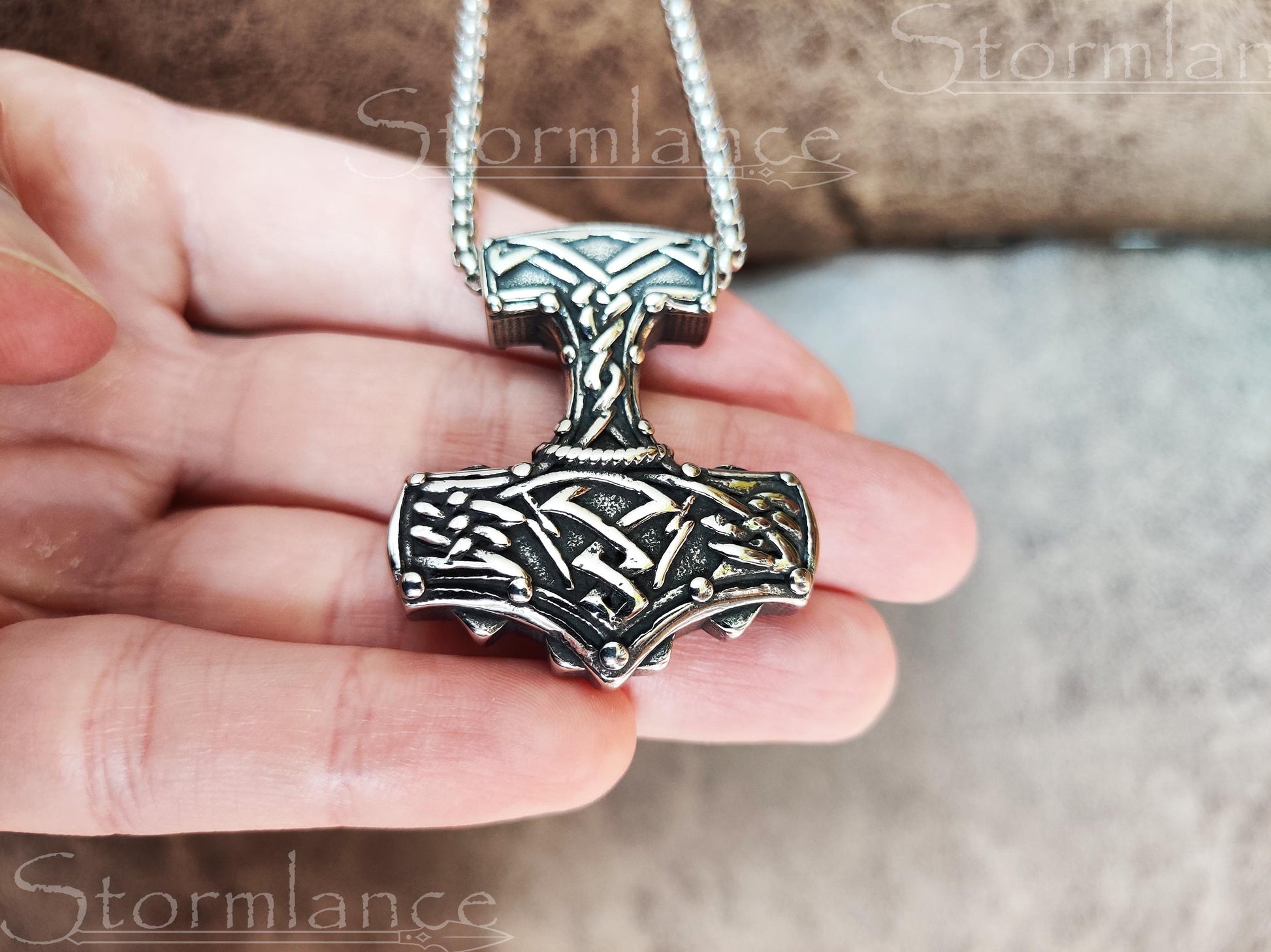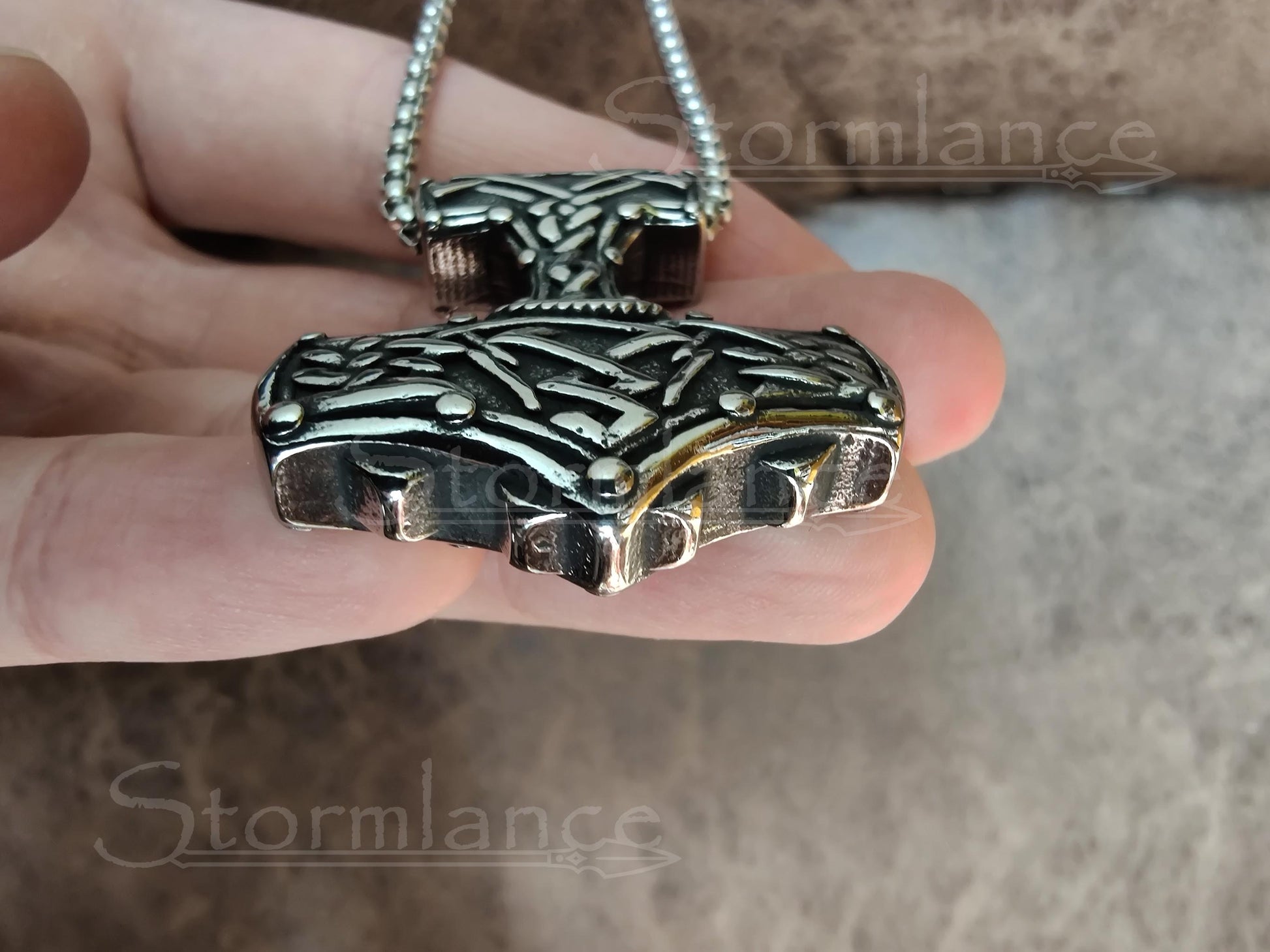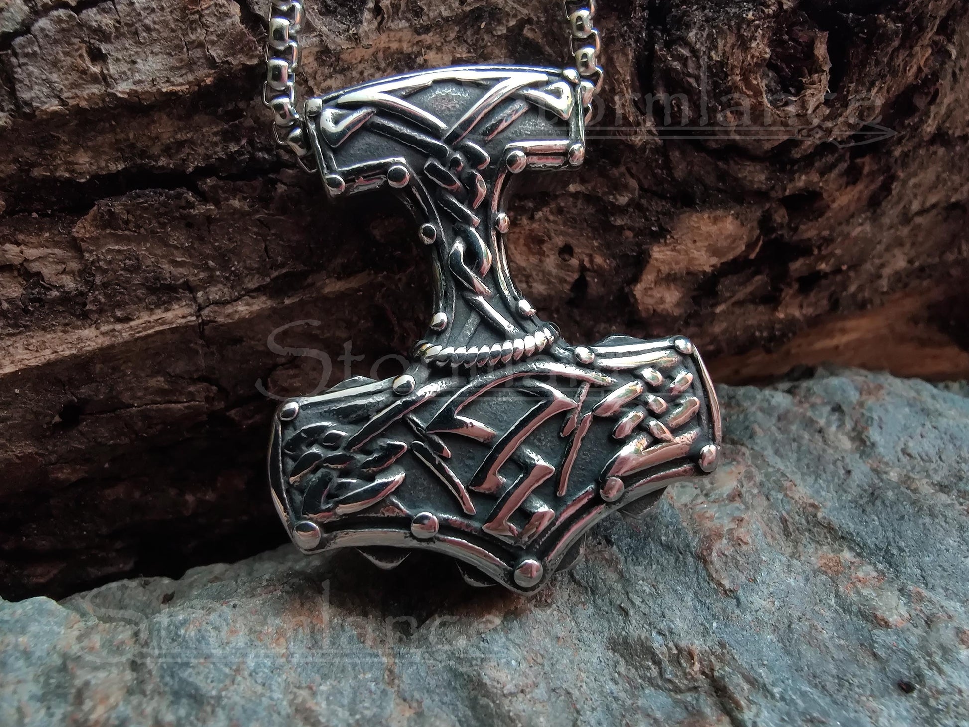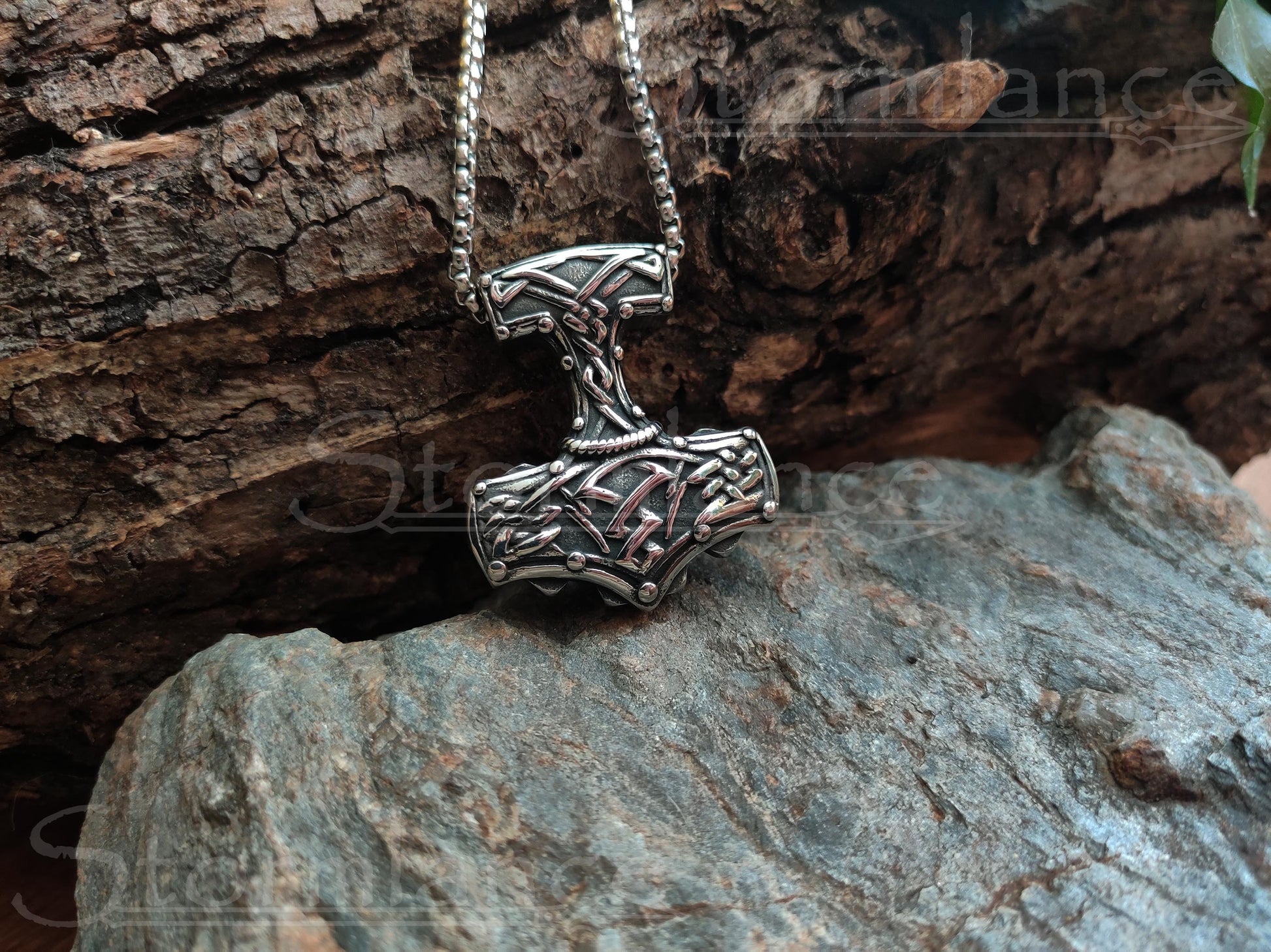 How about a Thor's hammer pendant with an intricate Scandinavian design?