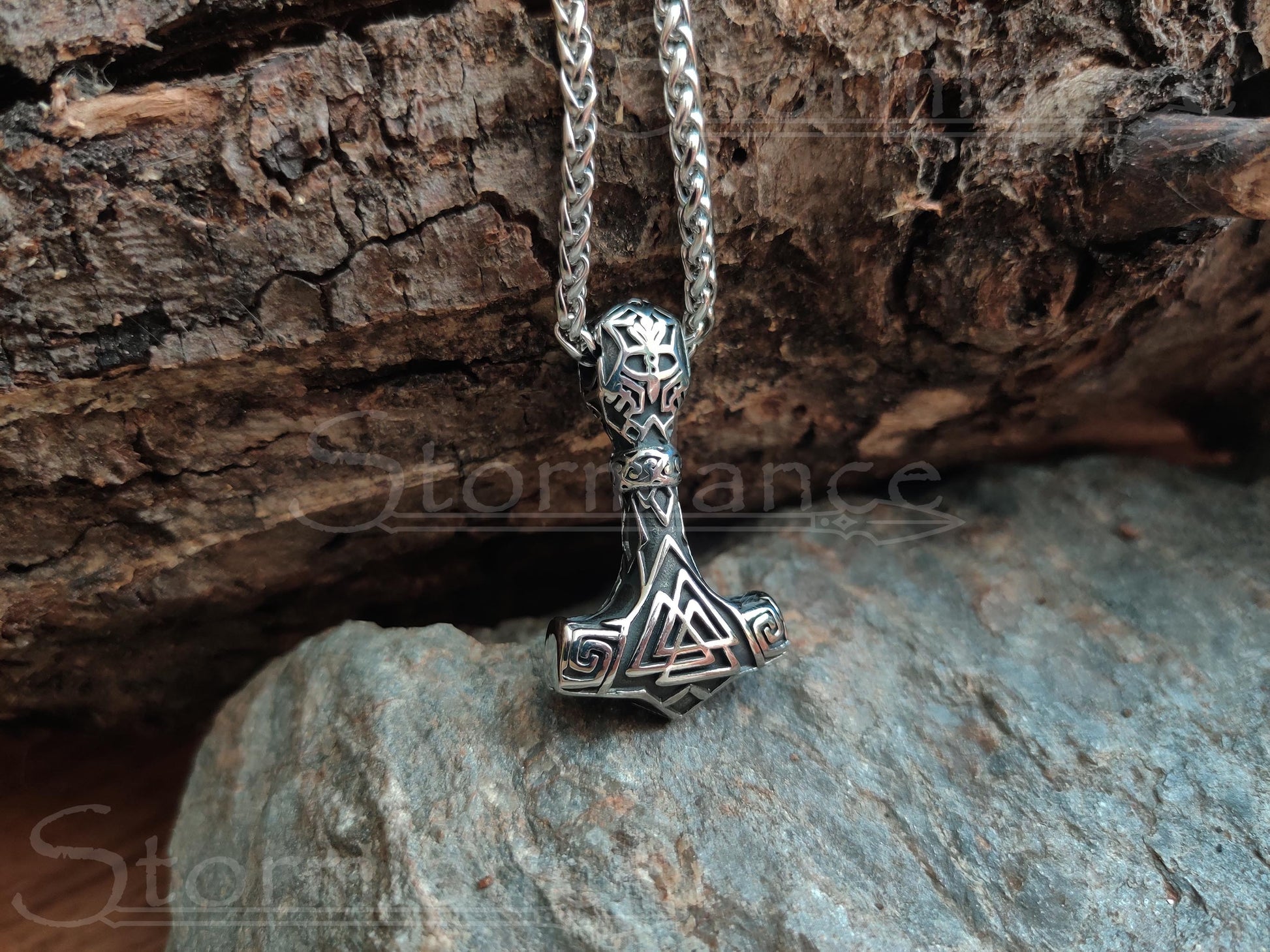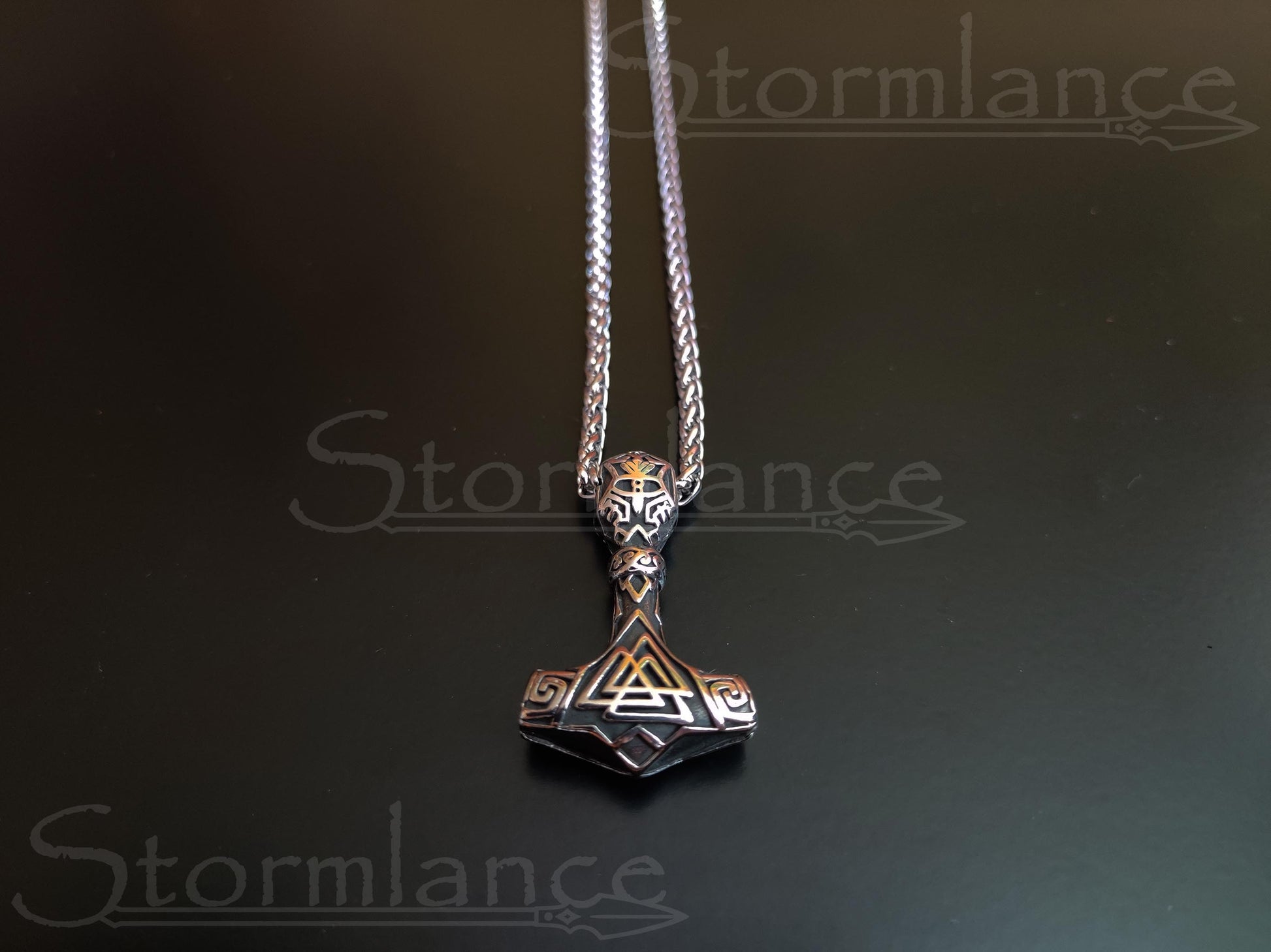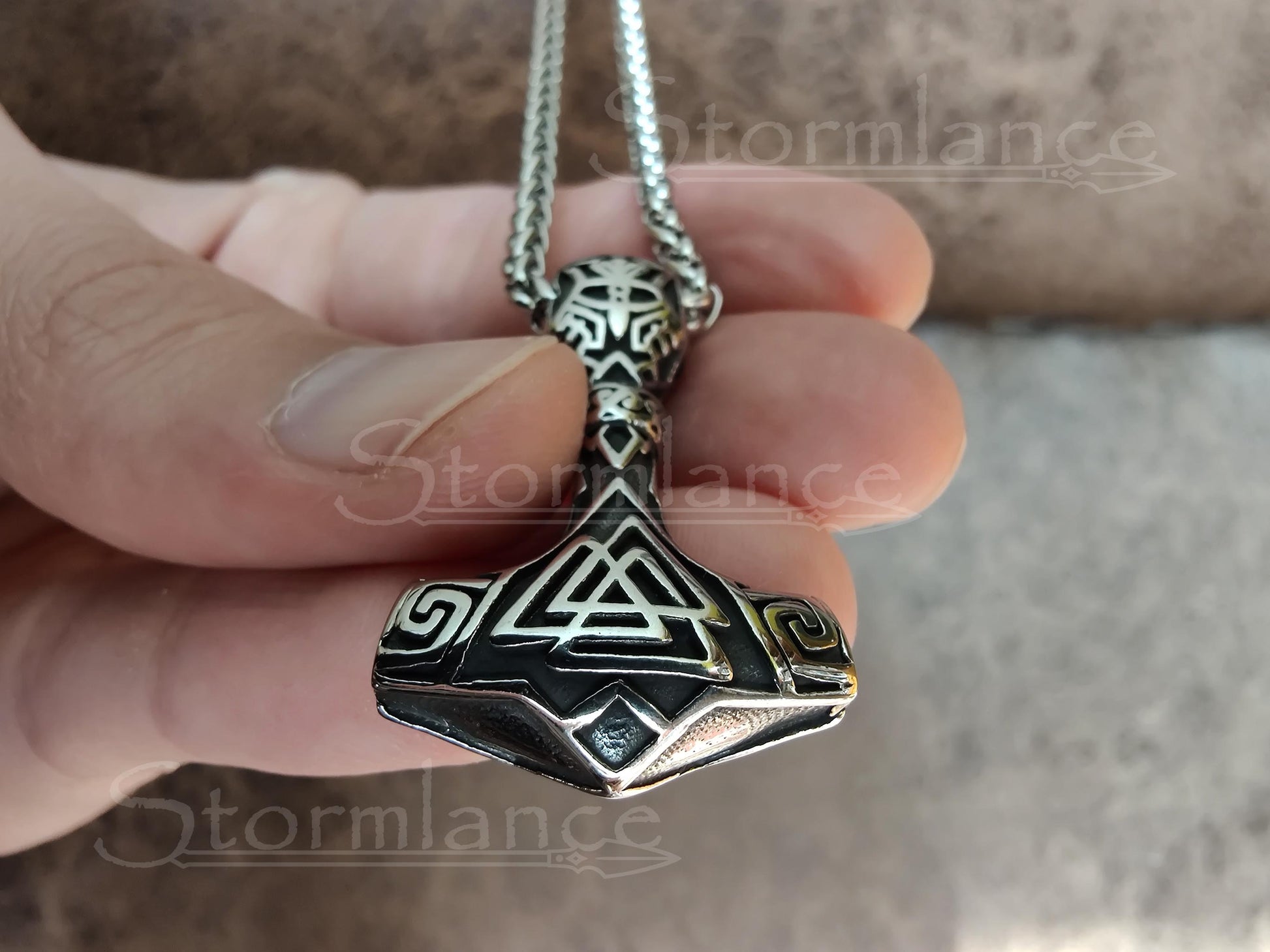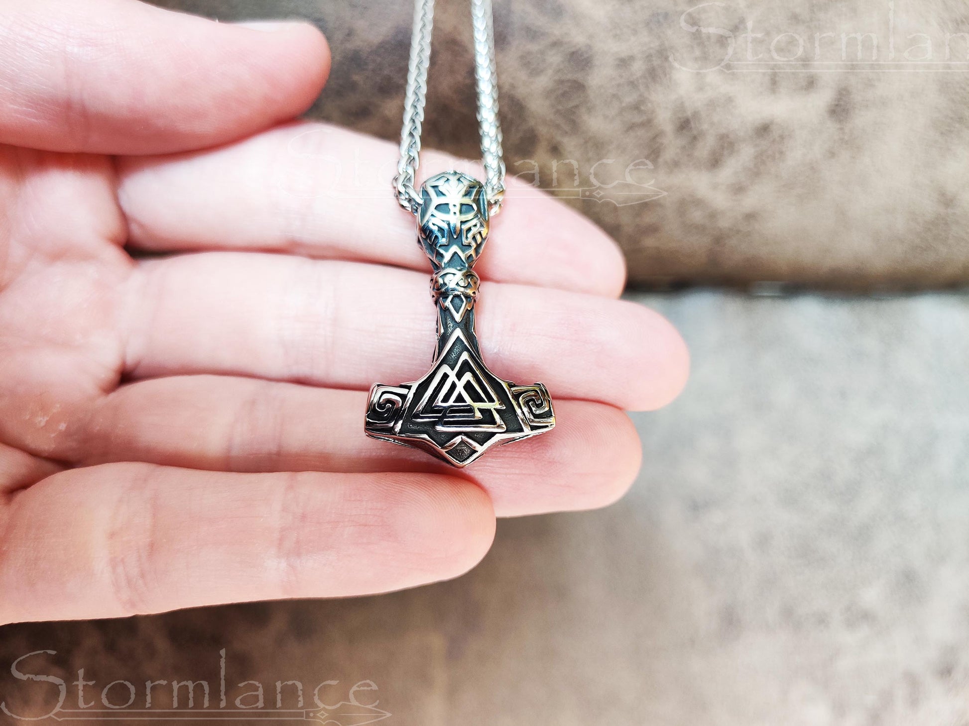 It's time to get your hands on this beautiful Valknut Mjolnir pendant with intricate Norse design.