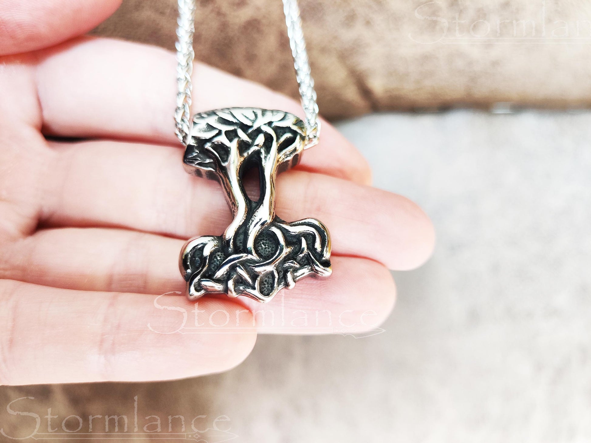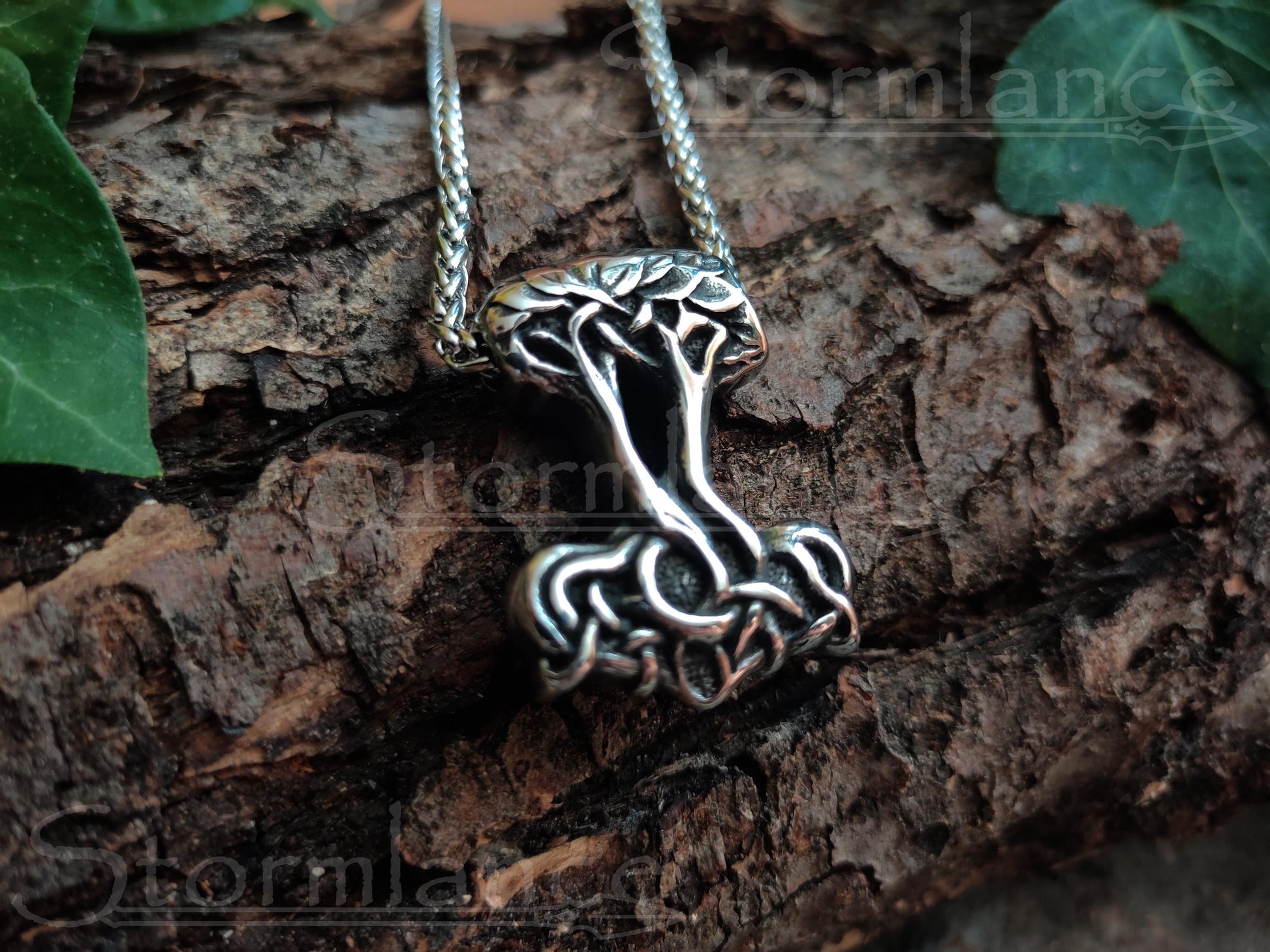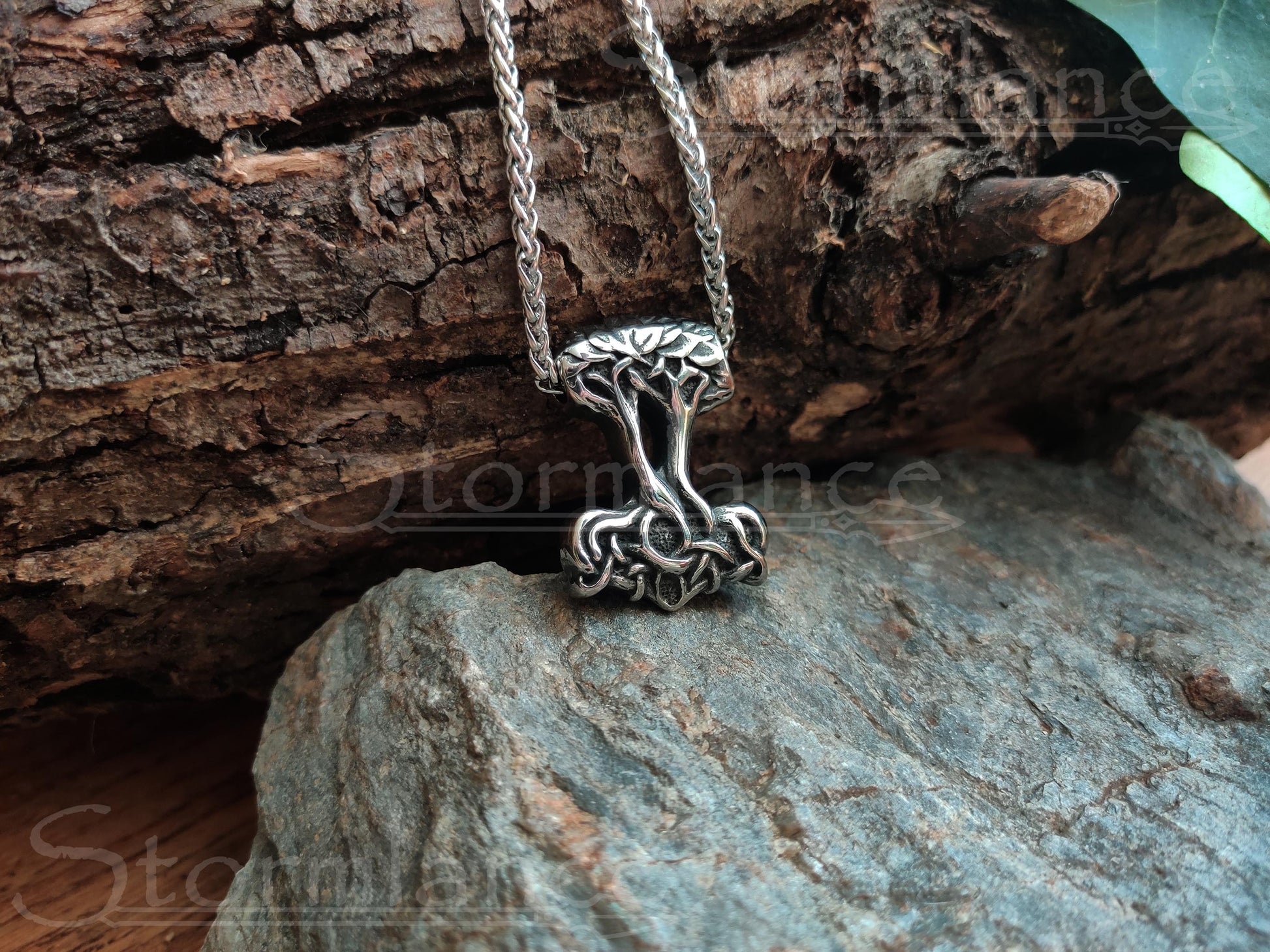 Can't decide whether to wear Thor's hammer or Yggdrasil as a pendant? Why not both? This beautiful Tree of Life in the shape of Mjolnir is a fine addition to everyone's Viking jewelry collection!