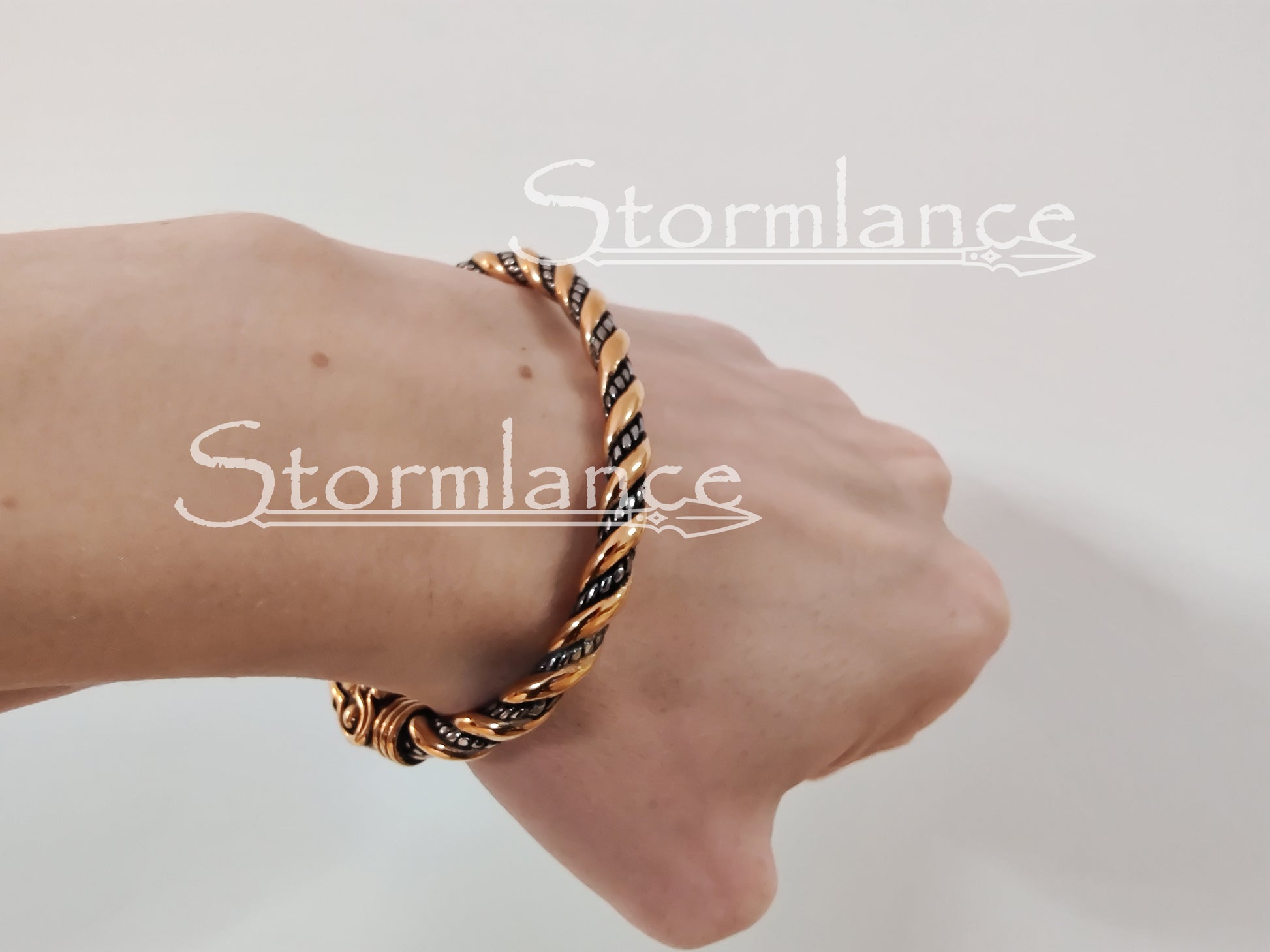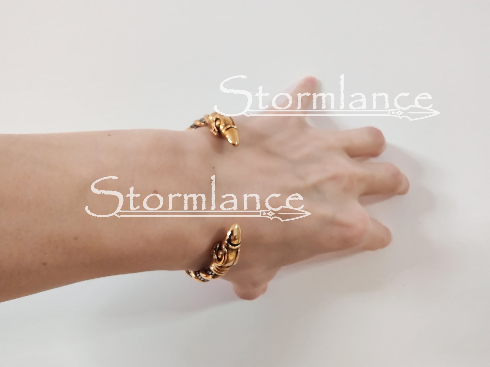 The Bracelet / Arm Ring can be adjusted by pulling/pushing the heads apart/together, although it requires a bit of pressure. The bracelet is by default set to fit medium-sized wrists, both women and men. The wrist circumference in the video is 16.5 cm (6.5 inches). The best way is to set it close enough so you can just barely put it on your wrist/arm from the rear side and once you turn it a bit, it will not fall off. Another option is to have it slightly loose and put it on farther on the arm.
