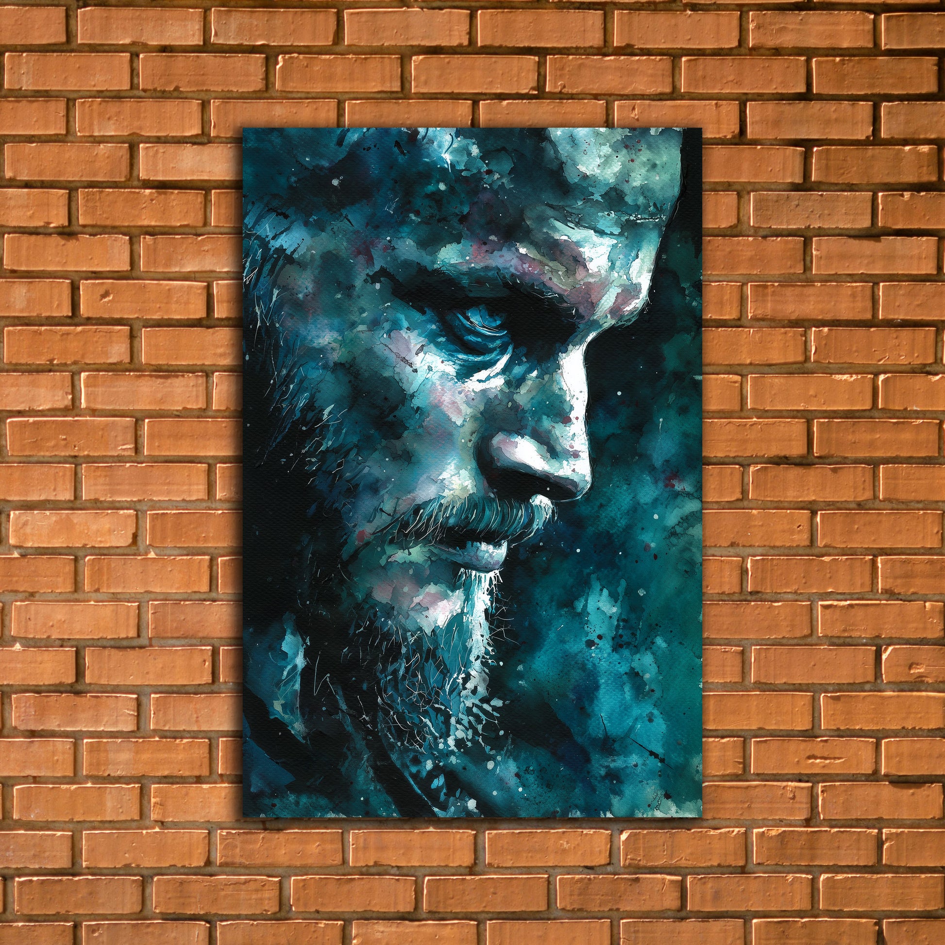 Ragnar Lothbrok Watercolor Poster (Teal & Black)