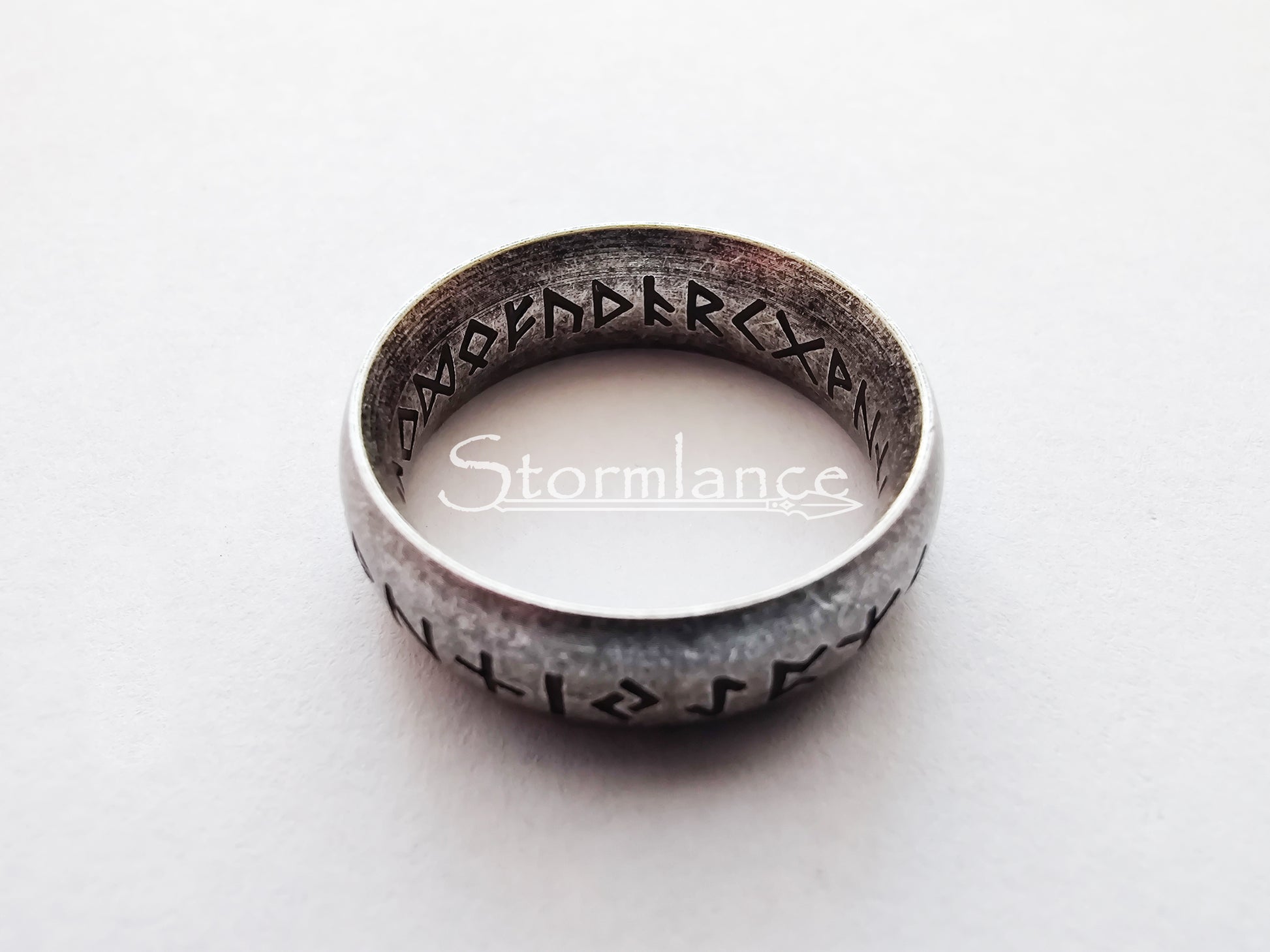 Circular Norse rune ring with Elder Futhark runes engraved on the inside and outside alike. It's a beautiful token to honor one of the great esoteric alphabets.