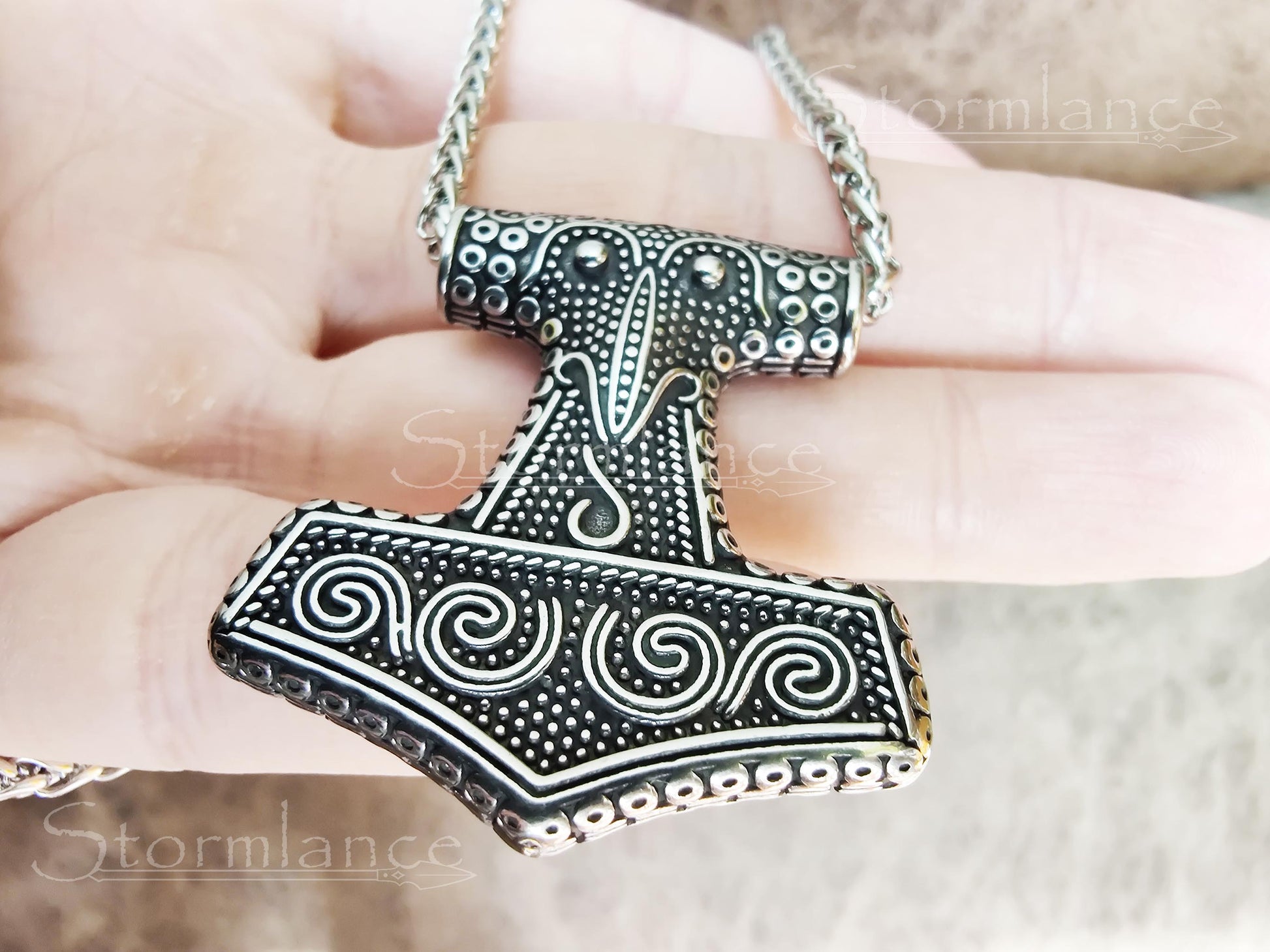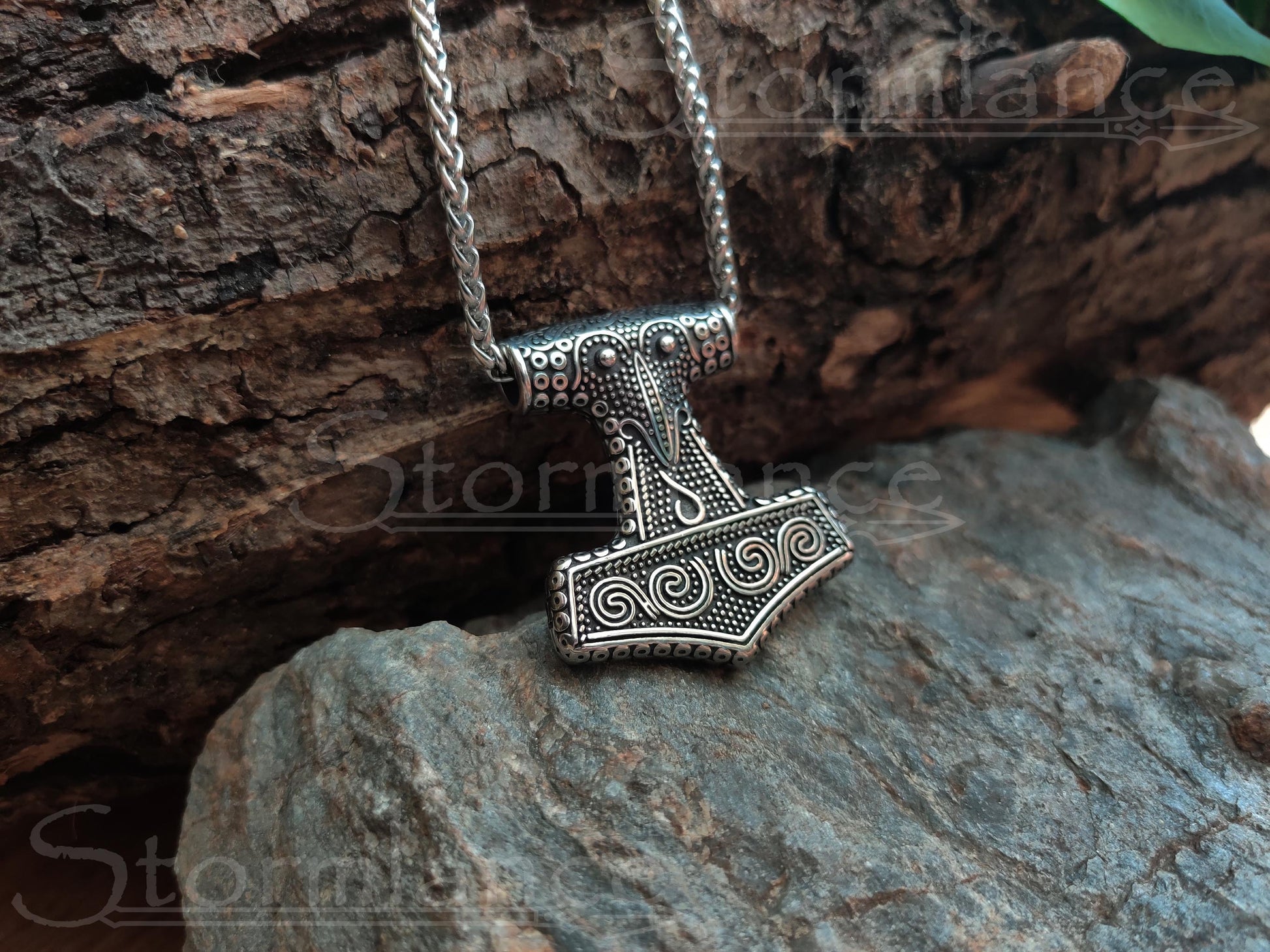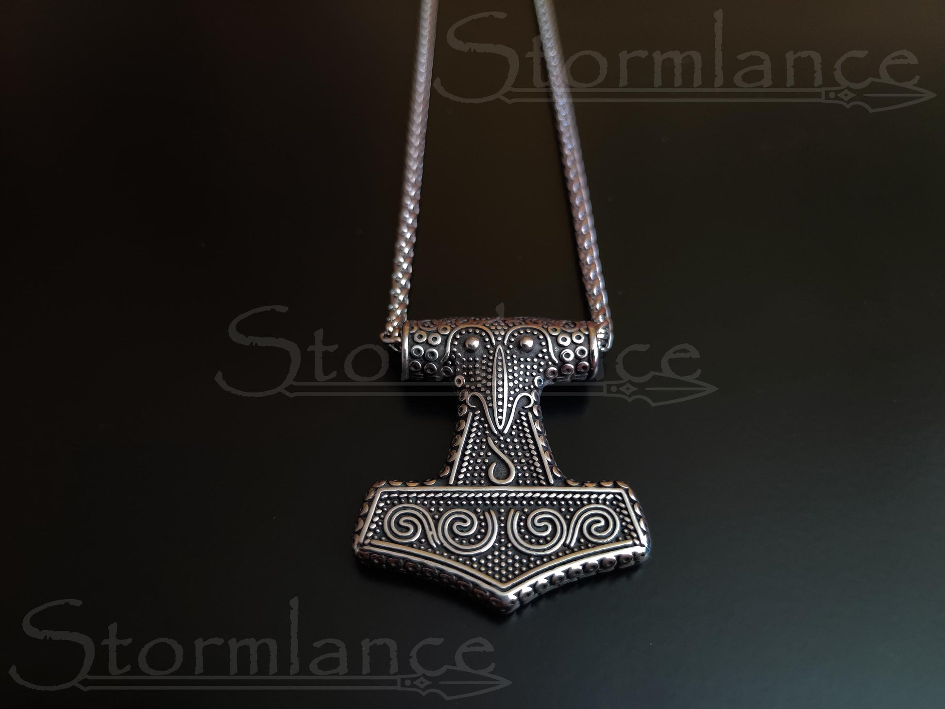 So you want something really authentic? Then you are in luck. This particular Thor's Hammer design is a nearly identical reproduction to the one found in Skane (Skåne County), Sweden. The amulet is made of top-quality stainless steel, the design is both-sided and it will never tarnish.